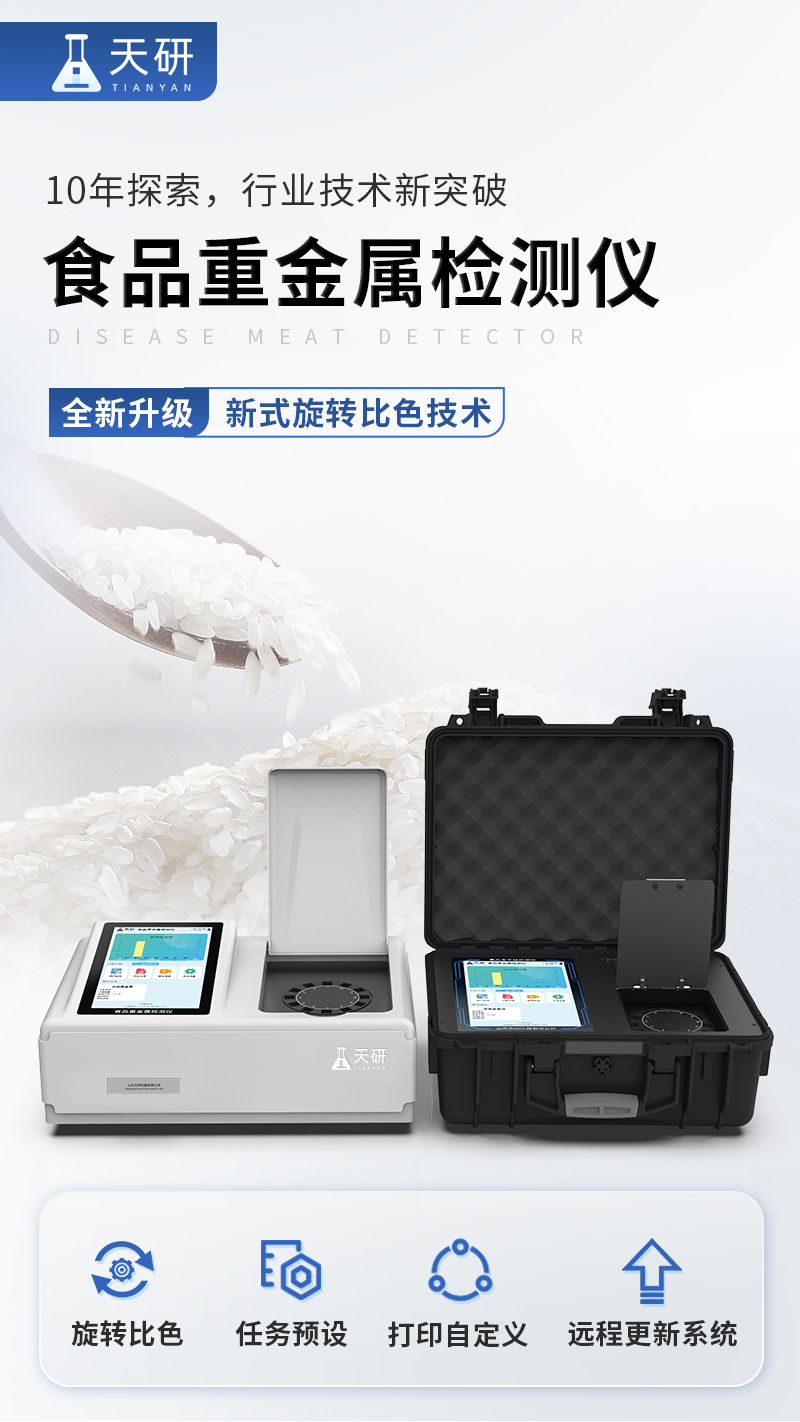 產(chǎn)品描述:儀器用途: 山東天研儀器有限公司生產(chǎn)的食品重金屬檢測(cè)儀為集成化食品安全快速檢測(cè)分析設(shè)備,采用手提箱一體化設(shè)計(jì),重金屬檢測(cè)儀可廣泛應(yīng)用于大米、糧谷、果品、蔬菜、藥材、水產(chǎn)品中重金屬鉛、鎘、六價(jià)鉻、汞、砷、鐵、鎳、鋁的快速檢測(cè),檢測(cè)項(xiàng)目可根據(jù)日后需求可進(jìn)行遠(yuǎn)程升級(jí)。 該食品重金屬檢【詳情】