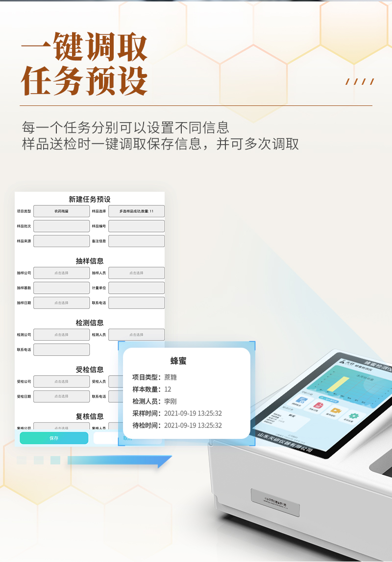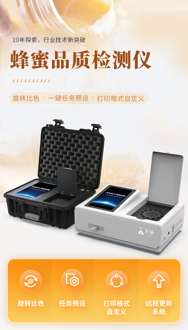 山東天研儀器有限公司生產(chǎn)的高智能蜂蜜檢測(cè)儀為集成化食品安全快速檢測(cè)分析設(shè)備,采用臺(tái)式一體化設(shè)計(jì),可快速檢測(cè)200多種食品安全項(xiàng)目,包含非食用化學(xué)物質(zhì)、濫用食品添加劑、農(nóng)藥殘留、獸藥殘留、重金屬、病害肉、營(yíng)養(yǎng)強(qiáng)化劑、抗生素類殘留、激素類殘留、真菌毒素類殘留、化學(xué)類殘留等項(xiàng)目的定性定量檢測(cè)。該高智能食品安全檢測(cè)儀為集成化食品安全快速檢測(cè)分析設(shè)備,目前已于食藥監(jiān)局、衛(wèi)生部門、高教院校、科研院所、農(nóng)業(yè)部門、養(yǎng)殖場(chǎng)、屠宰場(chǎng)、食品肉產(chǎn)品深加工企業(yè)及檢驗(yàn)檢疫部門等單位廣泛使用。