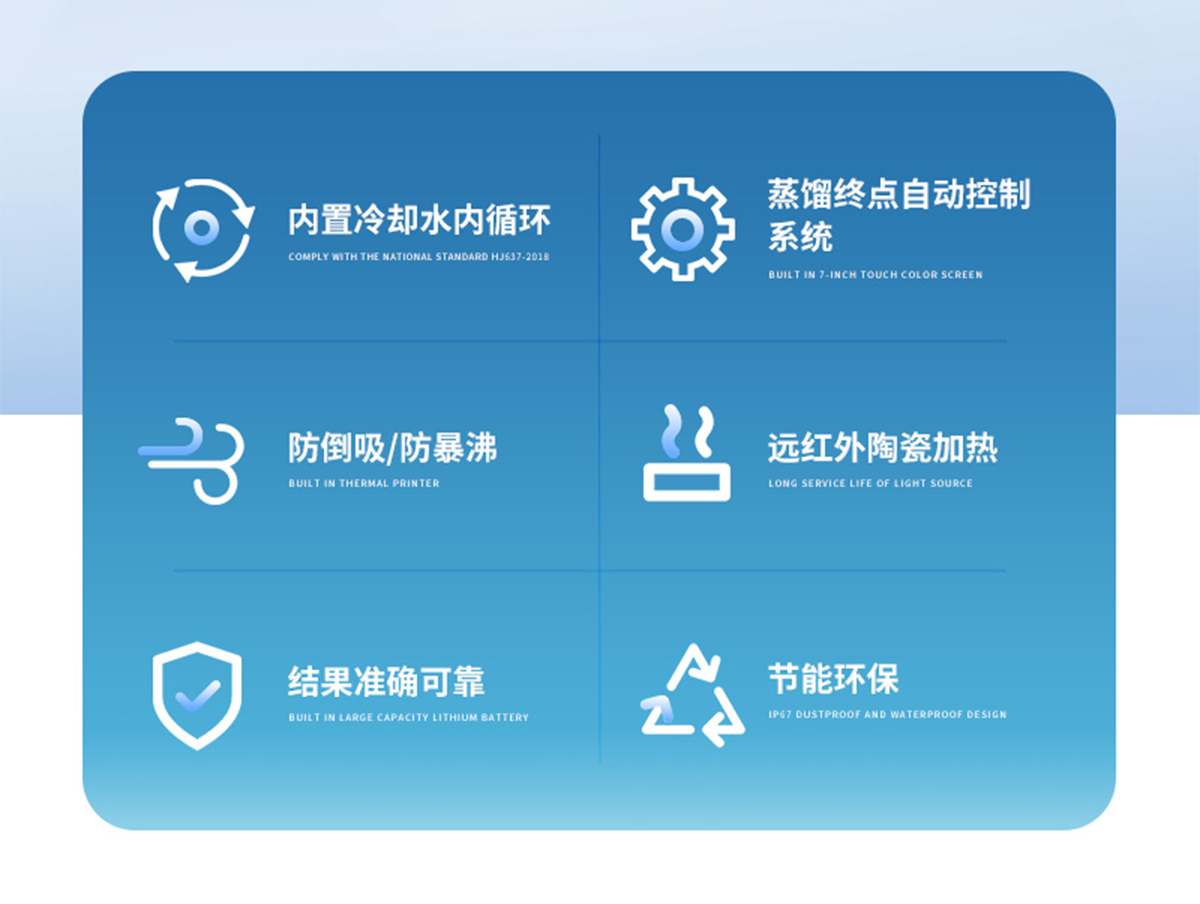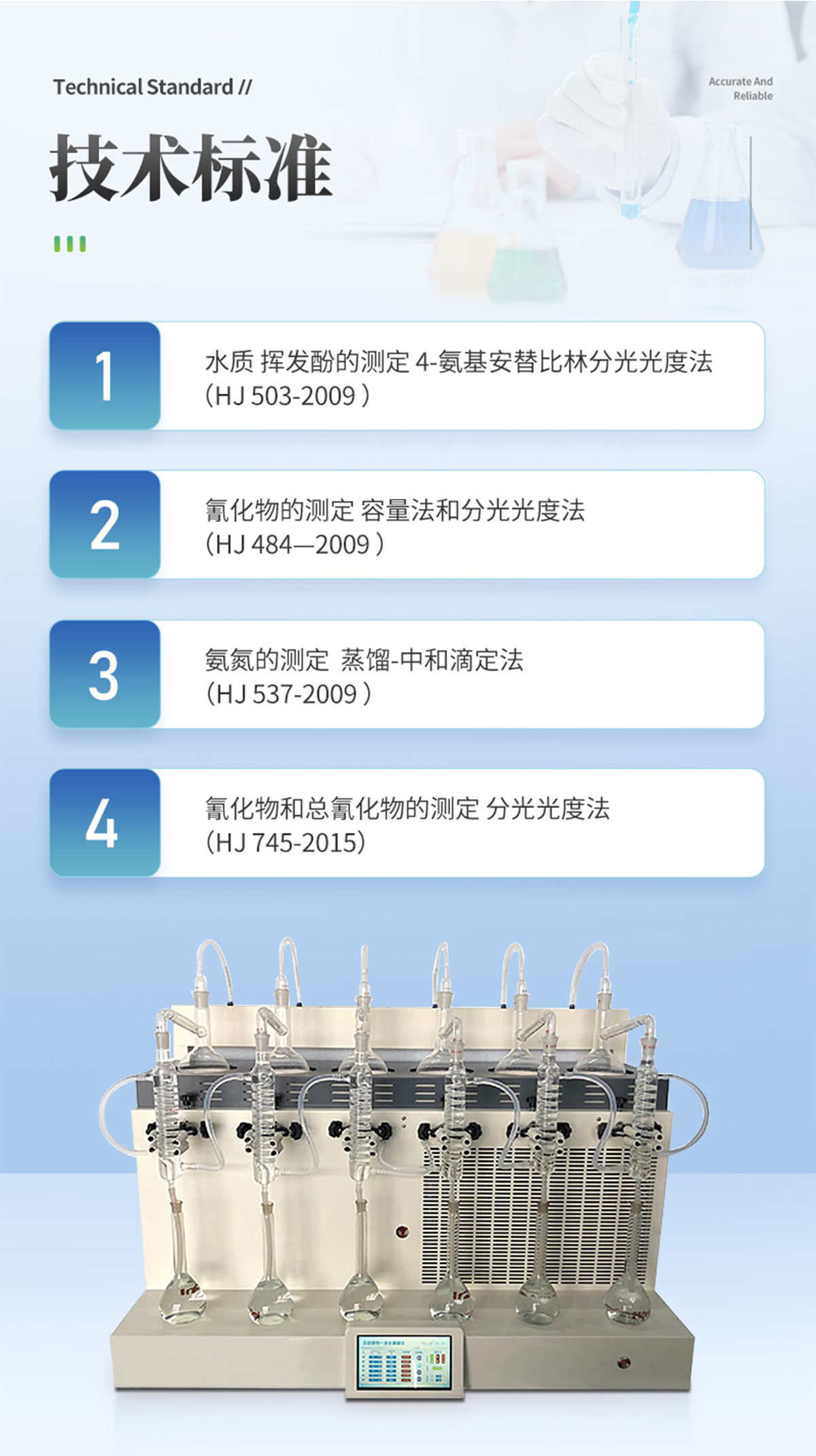 該儀器實驗了控溫、自動防倒吸、加熱均勻、防止暴沸、智能終點控制等功能。使用方便,節(jié)能環(huán)保。經(jīng)過實驗室蒸餾回收率比對驗證,結(jié)果準確,回收率達95%以上。該儀器可廣泛適用于環(huán)保、疾控、水產(chǎn)、供排水、高校、科研院所、廠礦企業(yè)等各類化學(xué)實驗室需要蒸餾處理的場所,如揮發(fā)酚、氨氮、凱氏氮油中水分等項目的蒸餾處理。