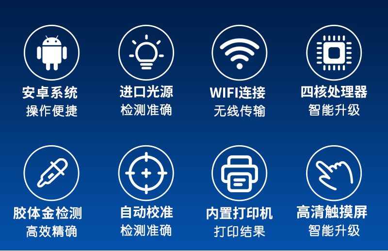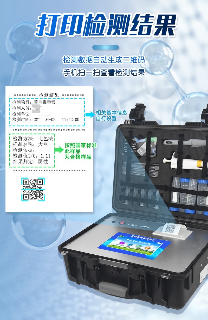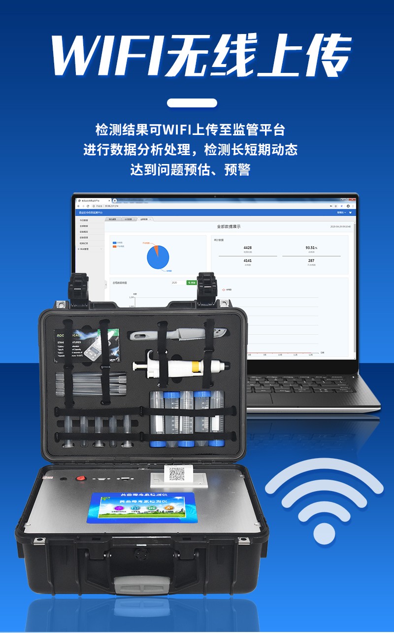 | 工作模式:安卓5.1系統(tǒng)模式 | 軟件支持:安卓軟件平臺 | ☆檢測項目:可檢測農(nóng)藥殘留、食品添加劑、色素、可現(xiàn)場快速檢測農(nóng)藥殘留、鹽酸克倫特羅、沙丁胺醇、萊克多巴胺、四環(huán)素類、硝基呋喃類、磺胺類、沙星類、氯霉素、孔雀石綠磺胺類,并且可以連接食品安全監(jiān)控系統(tǒng)。 | 測量原理:光電池測量反射衰減信號強度; | 測量速度:≤5s; | 儲存功能:儲存至少20000個結(jié)果數(shù)據(jù),支持自定義查詢; | 藍牙模塊:藍牙4.2 | 檢測精度:CV值小于1%(標準卡),批間差小于3%(標準卡); | 檢測輸出:支持色度檢測,CT比值檢測,T線檢測等多種擬合方式; | 內(nèi)置熱敏打印機 | ☆數(shù)據(jù)輸出:內(nèi)置WIFI,支持無線數(shù)據(jù)上傳,標準RS232串口,網(wǎng)絡(luò)接口和USB2.0接口; | ☆內(nèi)置食品安全信息系統(tǒng),一鍵數(shù)據(jù)上傳。 | 儀器外形尺寸:300*250*79mm | ☆操作系統(tǒng)配置:7吋液晶屏、4核處理器、1600萬像素 | 凈重:2.0kg。 |