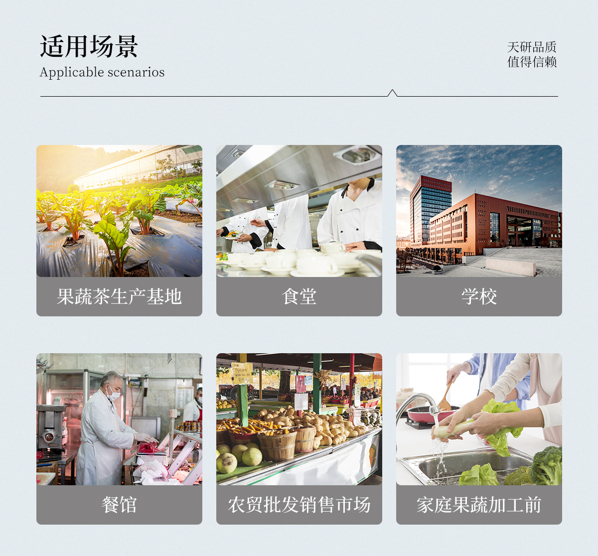 廣泛應用于主要用于蔬菜、水果、茶葉、糧食、農副產品等食品中有機磷和氨基甲酸酯類農藥殘留的快速檢測;此外還可用于果蔬茶生產基地和農貿批發(fā)銷售市場現場檢測,餐館、學校、食堂、家庭果蔬加工前的安全速測等。