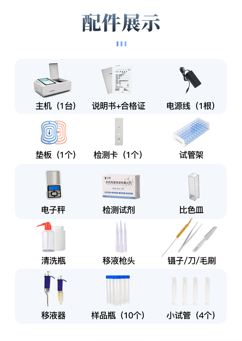 | 儀器采用臺(tái)式一體化系統(tǒng)檢測(cè)技術(shù),將分光光度模塊、新型農(nóng)殘檢測(cè)模塊、數(shù)字化管理模塊、無線通訊模塊高度集成于一體,支持檢測(cè)200種食品安全檢測(cè)項(xiàng)目,同時(shí)預(yù)留升級(jí)檢測(cè)方法。 | 儀器檢測(cè)模塊標(biāo)準(zhǔn)化、智能化,可隨意自由組合。檢測(cè)箱體內(nèi)置多個(gè)標(biāo)準(zhǔn)檢測(cè)單元,檢測(cè)模塊可以調(diào)整配置。 | 儀器采用全新安卓智能系統(tǒng),主控芯片采用 ARM Cortex-A7,RK3288/4核處理器,10.1寸高清液晶觸摸豎屏,更加**的UI交互界面,運(yùn)轉(zhuǎn)快捷;儀器配備無線通信模塊: 4G(APN)通訊模塊、Wifi模塊,藍(lán)牙傳輸,同時(shí)具有雙USB接口以及RJ45接口能以多種方式實(shí)現(xiàn)數(shù)據(jù)保存和數(shù)據(jù)傳輸功能。 | 創(chuàng)新檢測(cè)模式: | ★檢測(cè)通道:≥12通道;采用精密旋轉(zhuǎn)比色池設(shè)計(jì),使用同芯片同光源校準(zhǔn)精度,解決不同光源之間的誤差值。1-12通道間誤差0.1%。(**號(hào):ZL202022821055.2) | ★儀器具有自動(dòng)識(shí)別比色皿檢測(cè)功能,即:將樣品比色皿放入儀器后,點(diǎn)擊樣品檢測(cè),儀器自動(dòng)識(shí)別比色皿進(jìn)行通道檢測(cè)。 | 進(jìn)口高精光源: | 高精度進(jìn)口四波長(zhǎng)冷光源,通道配置 410、520、590、630nm 波長(zhǎng)光源,一個(gè)光源芯片驅(qū)動(dòng)一個(gè)光源,誤差極小,每臺(tái)設(shè)備單獨(dú)**校準(zhǔn)光源,**比對(duì),同時(shí)參照四種不同波段光源全方位覆蓋市面上99%的農(nóng)殘食品項(xiàng)目檢測(cè)。 | 智能化操作系統(tǒng): | 便捷操作系統(tǒng):設(shè)備檢測(cè)時(shí)可在同一檢測(cè)界面自動(dòng)對(duì)應(yīng)相關(guān)檢測(cè)通道一次性選擇1-12個(gè)樣品名稱,無須退出界面,節(jié)省操作時(shí)間。 | 數(shù)據(jù)集成系統(tǒng):設(shè)備首頁(yè)自動(dòng)統(tǒng)計(jì)檢測(cè)數(shù)據(jù)包含:周檢測(cè)數(shù)據(jù)、月檢測(cè)數(shù)據(jù),全部檢測(cè)總數(shù)量,均包含檢測(cè)總數(shù),合格數(shù),不合格數(shù),以及相關(guān)柱形分析圖,對(duì)各項(xiàng)檢測(cè)數(shù)據(jù)清晰掌握,無需電腦查詢,更加快捷直觀。 | 項(xiàng)目預(yù)設(shè)系統(tǒng):支持添加單個(gè)及多個(gè)相同或不相同的任務(wù)預(yù)設(shè),一鍵快速調(diào)取,每一個(gè)任務(wù)分別可以設(shè)置不同的樣品、批次、編號(hào)、來源、備注、抽樣信息、檢測(cè)信息、受檢信息、復(fù)核信息等更多信息。無縫鏈接平臺(tái)和APP實(shí)時(shí)查看下發(fā)任務(wù)。 | 數(shù)據(jù)監(jiān)管系統(tǒng):同步對(duì)接監(jiān)管平臺(tái),數(shù)據(jù)可局域網(wǎng)和互聯(lián)網(wǎng)數(shù)據(jù)上傳,檢測(cè)結(jié)果可選擇直接傳至食品安全監(jiān)管平臺(tái)。集成OSS輸出存儲(chǔ)服務(wù)、區(qū)分設(shè)備定向管理應(yīng)用,進(jìn)行區(qū)域食品安全監(jiān)管及大數(shù)據(jù)分析處理與數(shù)據(jù)統(tǒng)計(jì),檢測(cè)區(qū)域食品安全長(zhǎng)短期動(dòng)態(tài),達(dá)到食品安全問題預(yù)估、預(yù)警。 | 自定義打印系統(tǒng):內(nèi)置全新打印系統(tǒng),新創(chuàng)自定義打印方式,可按需靈活設(shè)置開啟或關(guān)閉:產(chǎn)品合格證(國(guó)家農(nóng)業(yè)部標(biāo)準(zhǔn)要求),二維碼,抽樣信息、檢測(cè)信息,受檢信息、復(fù)核信息、抽樣日期、檢測(cè)日期等信息的打印。 | 系統(tǒng)遠(yuǎn)程更新功能:可定向分客戶分儀器更新系統(tǒng),按照不同客戶后期實(shí)際需求添加項(xiàng)目,無需機(jī)器返廠,即可遠(yuǎn)程實(shí)時(shí)升級(jí)全新系統(tǒng),節(jié)省時(shí)間成本及避免運(yùn)輸造成設(shè)備損壞。 | 儀器主機(jī)采用一體化防水、抗壓、防撞擊、防腐蝕箱體設(shè)計(jì),同時(shí)配備交直流供電,可連接車載電源,可選配大容量充電鋰電池,滿足現(xiàn)場(chǎng)野外檢測(cè)需求。 | 安全證書,放心保障:儀器具有中國(guó)計(jì)量科學(xué)研究院校準(zhǔn)證書,**認(rèn)證。 |