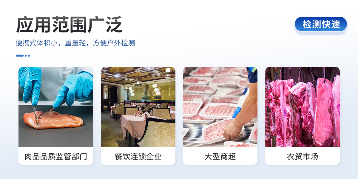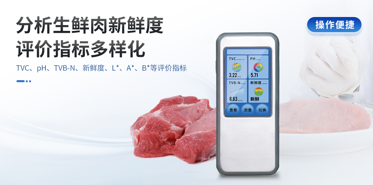 聯合中國農業(yè)大學彭彥昆教授團隊研發(fā)的掌上式生鮮肉新鮮度分析儀,可用于檢測生鮮肉的TVC、pH、TVB-N、新鮮度、L*、A*、B*等評價指標。Palmarter具有體積小、便 于攜帶、性價比高等特點,其應用場景包括但不限于肉儲運企業(yè)、肉品品質監(jiān)管部門、飯店、超市、菜場、家庭等。