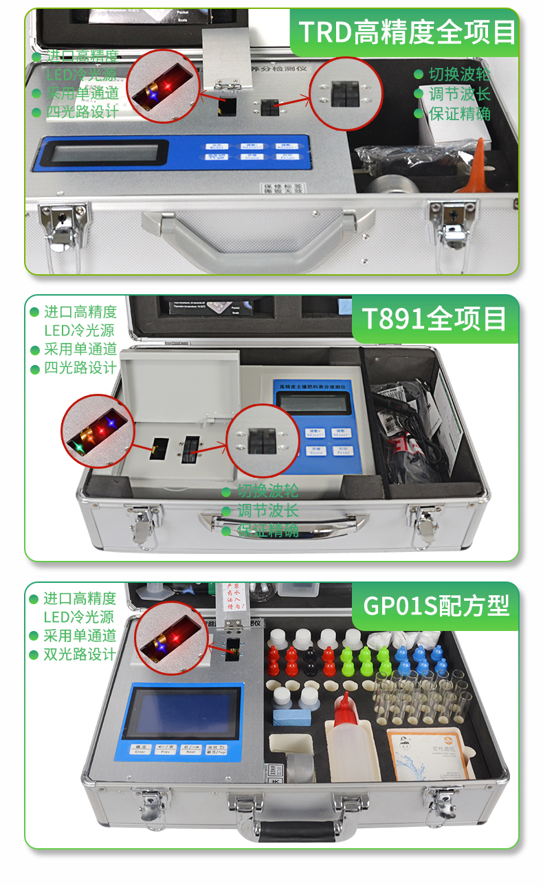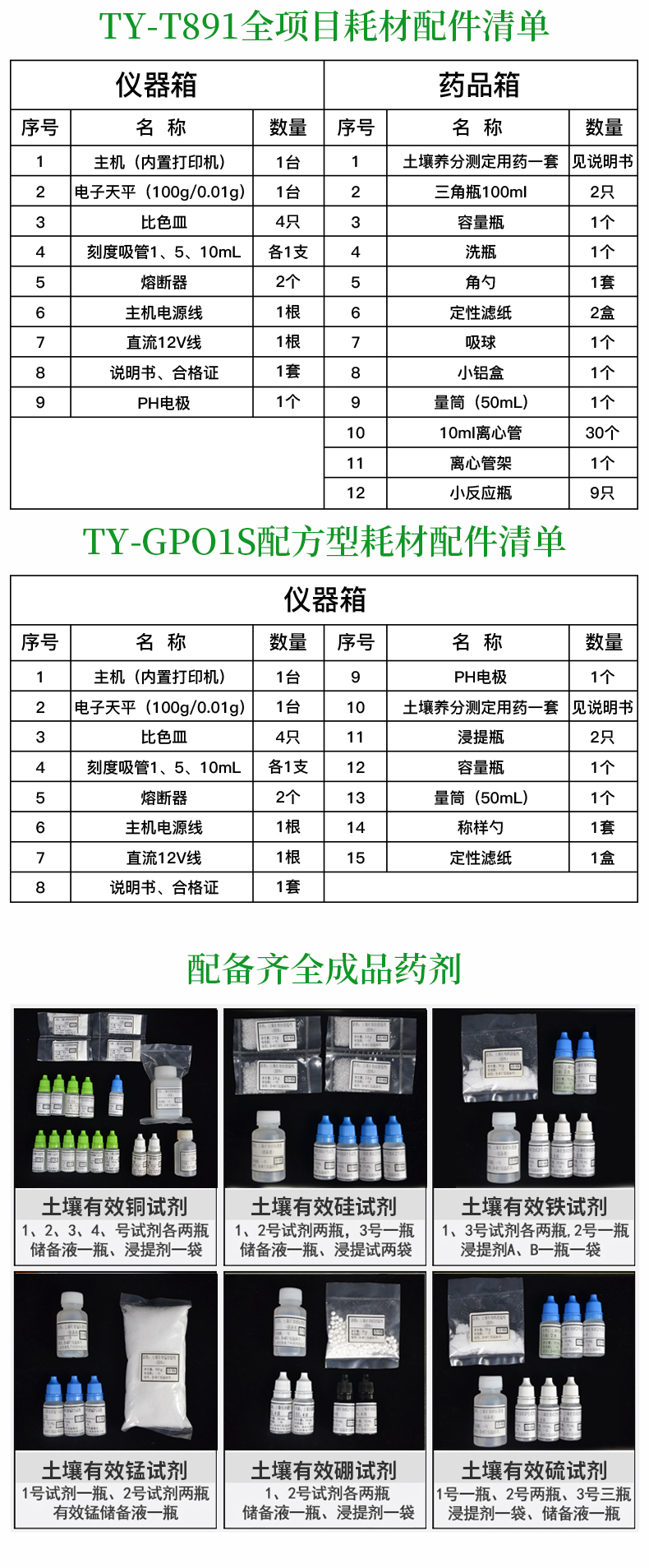 | 全項(xiàng)目土壤肥料養(yǎng)分速測(cè)儀功能全:測(cè)試項(xiàng)目國(guó)內(nèi)外*全(各類(lèi)藥劑均可選購(gòu))。 | 配套齊全:該儀器集藥、器、儀為一體,攜帶方便,相當(dāng)于一個(gè)小型實(shí)驗(yàn)室。適于農(nóng)業(yè)服務(wù)部門(mén)或農(nóng)資經(jīng)銷(xiāo)商、肥料廠商測(cè)土施肥和鑒別肥料真假。 | 操作簡(jiǎn)便、速度快捷,成品藥劑開(kāi)瓶即用,無(wú)須配置。 |