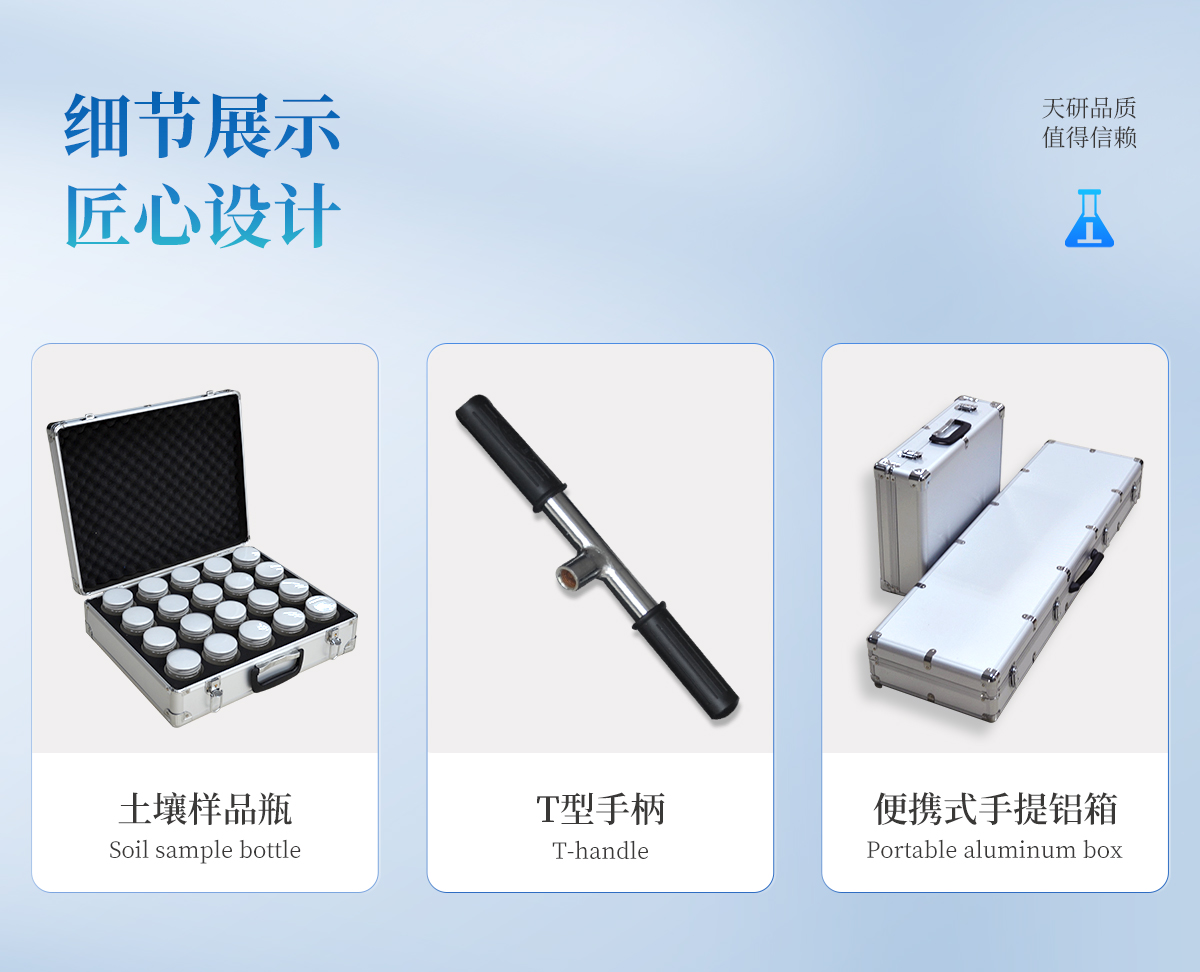 | 規(guī)格 | 長 35cm ,螺紋連接 | 長 30 cm ,帶有刻度,螺紋連接 | 長 50 cm ,帶有刻度,螺紋連接 | 長 100cm ,帶有刻度,螺紋連接 | 刀寬 7cm ,刀間距 5cm ,采樣長度 20cm ,螺紋連接,不銹鋼材質(zhì),特殊硬化處理,免去生銹煩惱,便于打理維護(hù) | 刀寬 3cm ,刀間距 6cm ,采樣長度 20cm ,螺紋連接,不銹鋼材質(zhì),特殊硬化處理,免去生銹煩惱,便于打理維護(hù) | 采樣直徑 7cm,螺紋連接,錳鋼材質(zhì),堅硬耐磨 | 不銹鋼材質(zhì)、采樣直徑 5cm、采樣長度 20cm,螺紋連接 | 不銹鋼材質(zhì),寬 20mm | 19×22mm | 牛皮,手背透氣, | 3 米 | 用于擦拭鉆具 | 內(nèi)置 EVA防震內(nèi)襯,用于裝上述鉆具,便于戶外攜帶 | 250ml 、測土壤有機(jī)物專用土樣保存瓶,乳白色 |