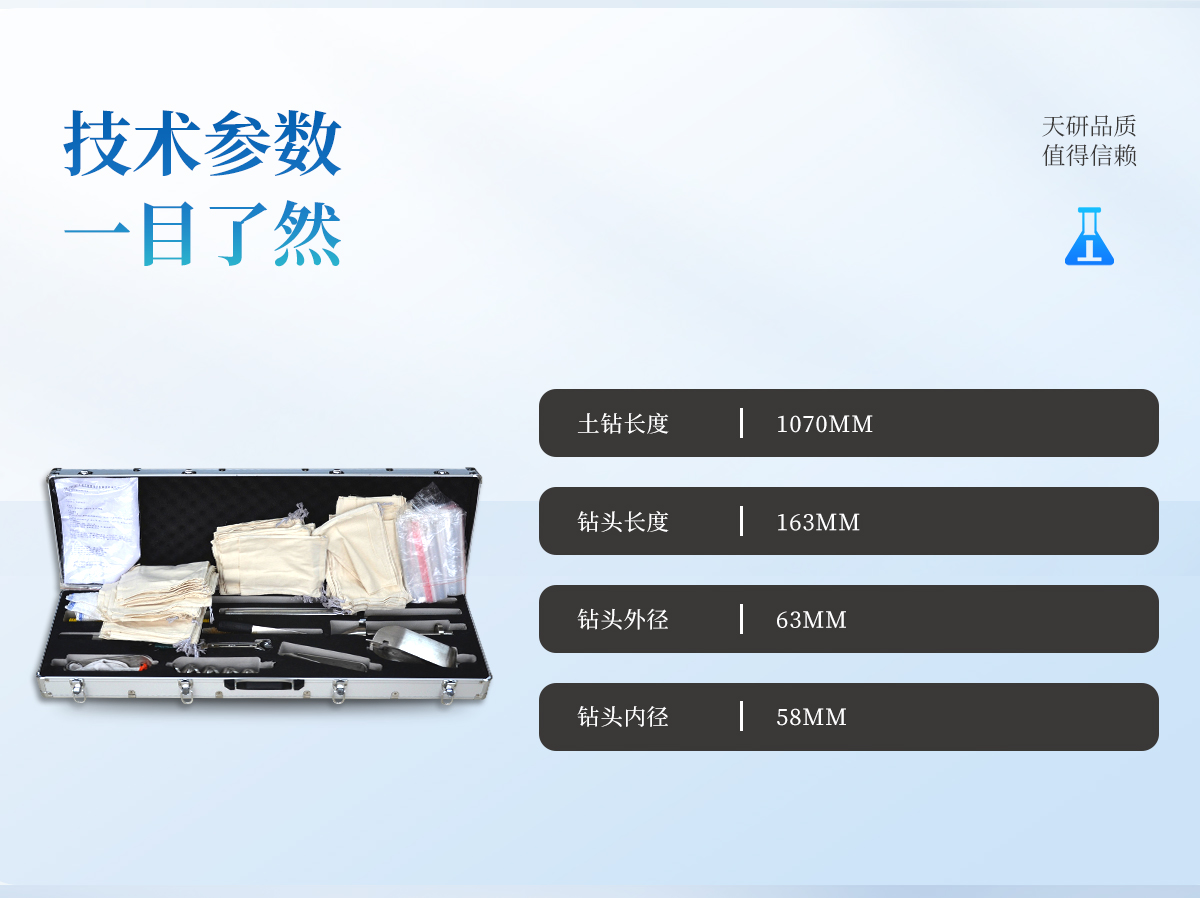 | 可針對不同直徑的土壤顆粒配備不同的專用鉆頭,對不同深度和區(qū)域的土壤進(jìn)行合理采樣和分類。 |
