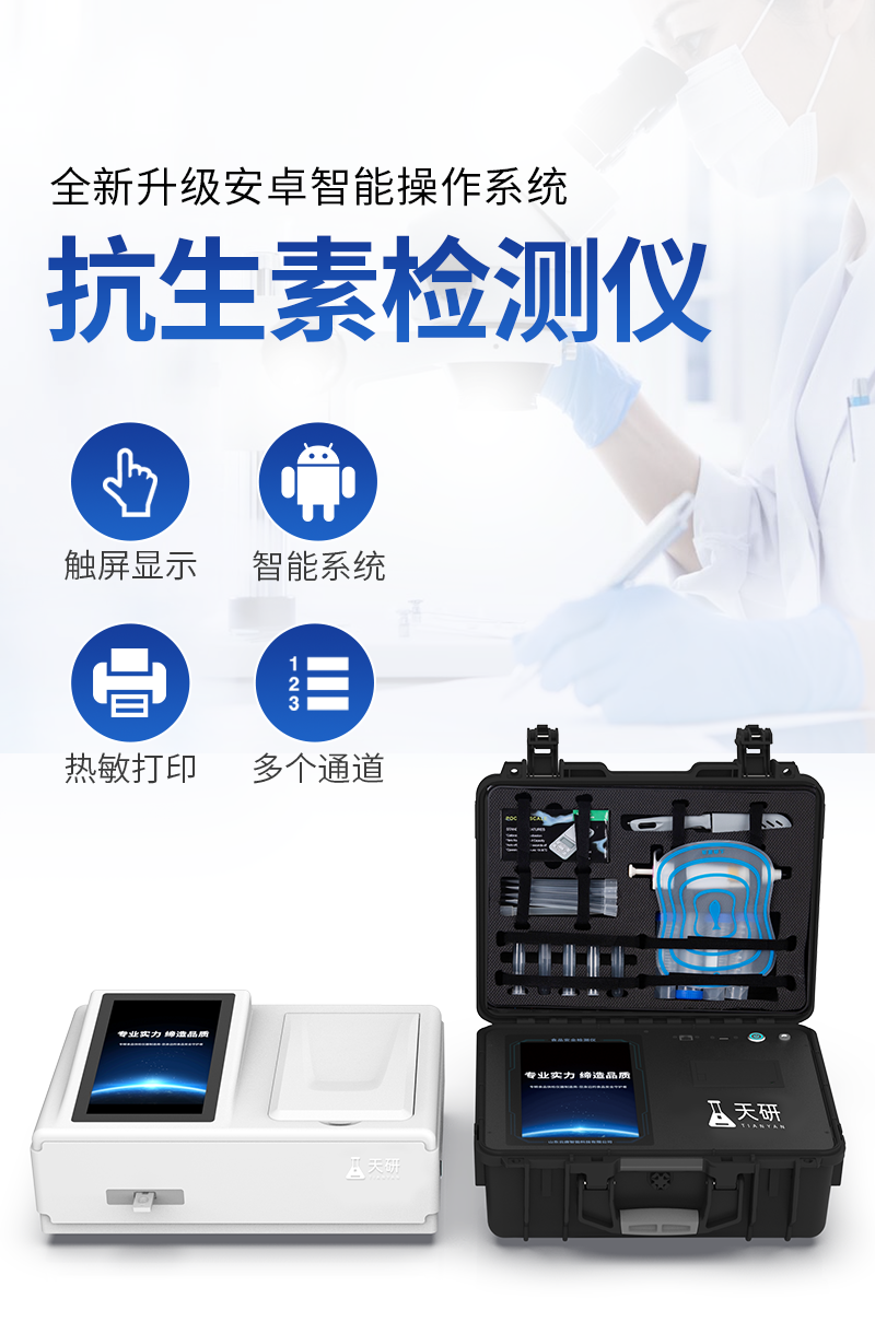 該抗生素檢測(cè)儀適用于豬、雞、鴨、羊、牛、牛奶等畜禽肉產(chǎn)品中獸藥殘留,包括抗生素類殘留、瘦肉精激素類殘留和水產(chǎn)品有毒有害物質(zhì)的現(xiàn)場(chǎng)快速篩查定及性定量檢測(cè)。 該多功能獸藥殘留檢測(cè)儀為集成化肉品安全快速檢測(cè)分析設(shè)備,可廣泛應(yīng)用于畜牧養(yǎng)殖場(chǎng)、屠宰場(chǎng)、食品肉產(chǎn)品深加工企業(yè)、食藥監(jiān)局、檢驗(yàn)檢疫部門、衛(wèi)生部門、高教院校、科研院所、農(nóng)業(yè)部門等單位使用。